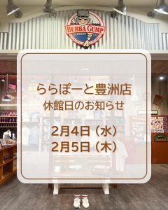 【ららぽーと豊洲店 休館日のお知らせ】